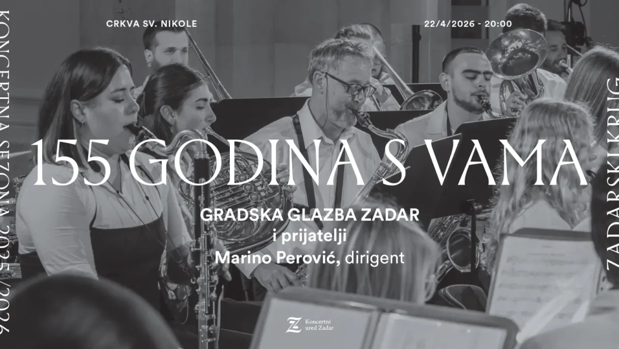 Zadar će 22. travnja biti u znaku glazbe i tradicije – Gradska glazba Zadar svečanim koncertom obilježava impresivnih 155 godina kontinuiranog djelovanja. Ovaj poseban glazbeni događaj održat će se u srijedu s početkom u 20 sati u crkvi sv. Nikole, a ulaz je slobodan za sve posjetitelje.
