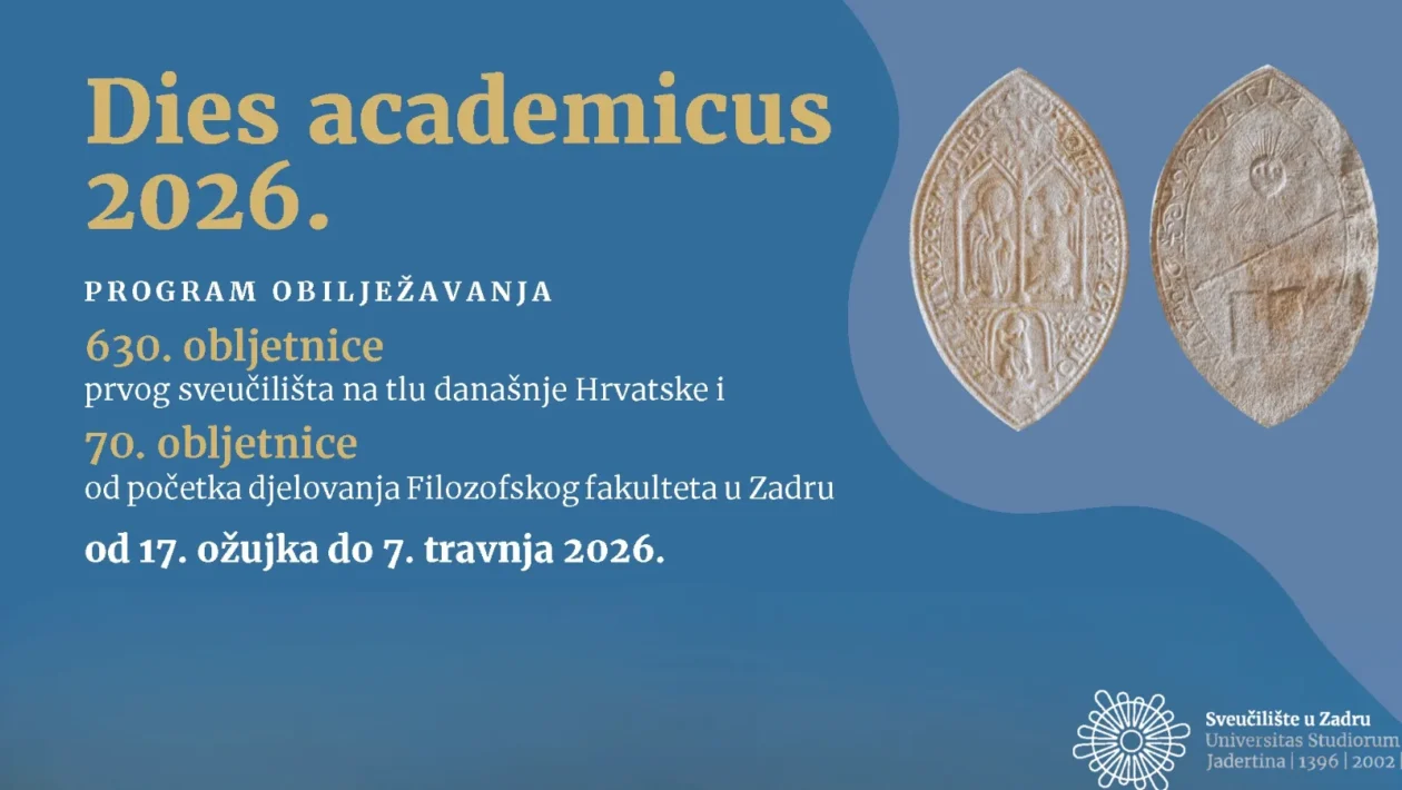 Uvodno obilježavanje Dies Academicus 2026 donosi gotovo tri tjedna raznovrsnih sveučilišnih događanja u Zadru, od 17. ožujka do 7. travnja. Manifestacija ističe 630 godina prve visokoškolske ustanove na tlu današnje Hrvatske i 70 godina rada Filozofskog fakulteta u Zadru. Program okuplja građane, studente i stručnjake te uključuje promocije knjiga, koncerte, znanstvene skupove i svečanu sjednicu kao središnji događaj.