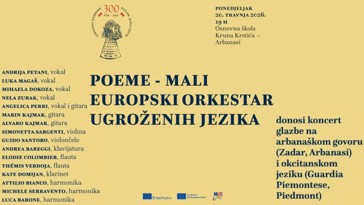 Erasmus+ projekt MUS-La Mi Re završnim koncertom u Zadru potvrđuje kako glazba može biti snažan alat očuvanja ugroženih europskih govora i jezika. Okupljajući mlade umjetnike iz više zemalja, projekt povezuje edukaciju, tradiciju i suvremeni glazbeni izričaj. Završno događanje u Arbanasima dodatno naglašava važnost jezika i glazbe kao živog kulturnog nasljeđa te ulogu mladih u očuvanju europske jezične i kulturne raznolikosti. Ulaz na koncert je slobodan, a događaj je otvoren za sve zainteresirane građane i posjetitelje.