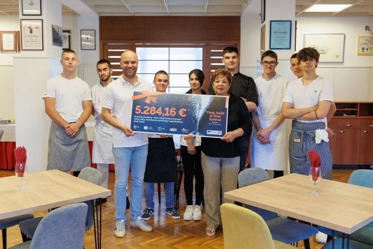 Direktor Turističke zajednice grada Zadra Mario Paleka danas je učenicima Hotelijersko-turističke i ugostiteljske škole, njihovoj ravnateljici Diani Radić Škara i nastavniku kuharstva Renatu Kraljevu uručio ček od 5.284,16 eura. Radi se o prihodu s nedavno održanog Tuna, Sushi & Wine Festivala, na kojemu su sudjelovali učenici, a koji se tradicionalno dodjeljuje ovoj ustanovi u cilju poboljšanja uvjeta školovanja neophodnih kadrova u turizmu – kuhara, konobara i komercijalista.