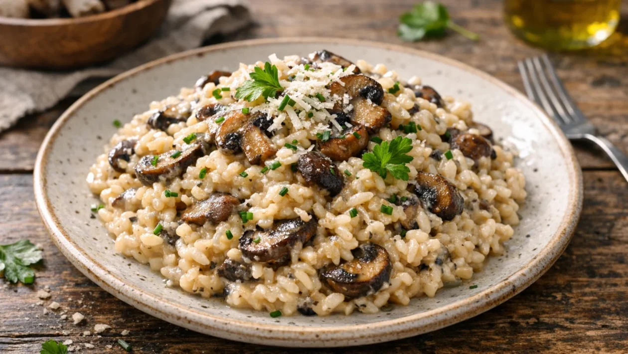 Rižoto s gljivama bogat je složenim ugljikohidratima koji pružaju dugotrajnu energiju, dok gljive doprinose unosu vlakana, vitamina B skupine i minerala poput selena.