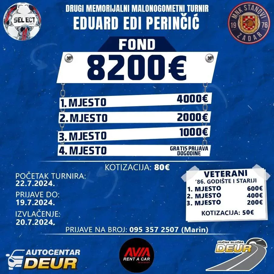 Mnk Stanovi s ponosom najavljuju 2. Memorijalni turnir Eduard Edi Perinčić, s još bogatijim nagradnim fondom i više kategorija. Nakon uspjeha prošlogodišnjeg turnira, dodatno motivirani, organizatori su pripremili još bolji događaj. Prijave su otvorene, a svi ljubitelji sporta pozvani su na Stanove.