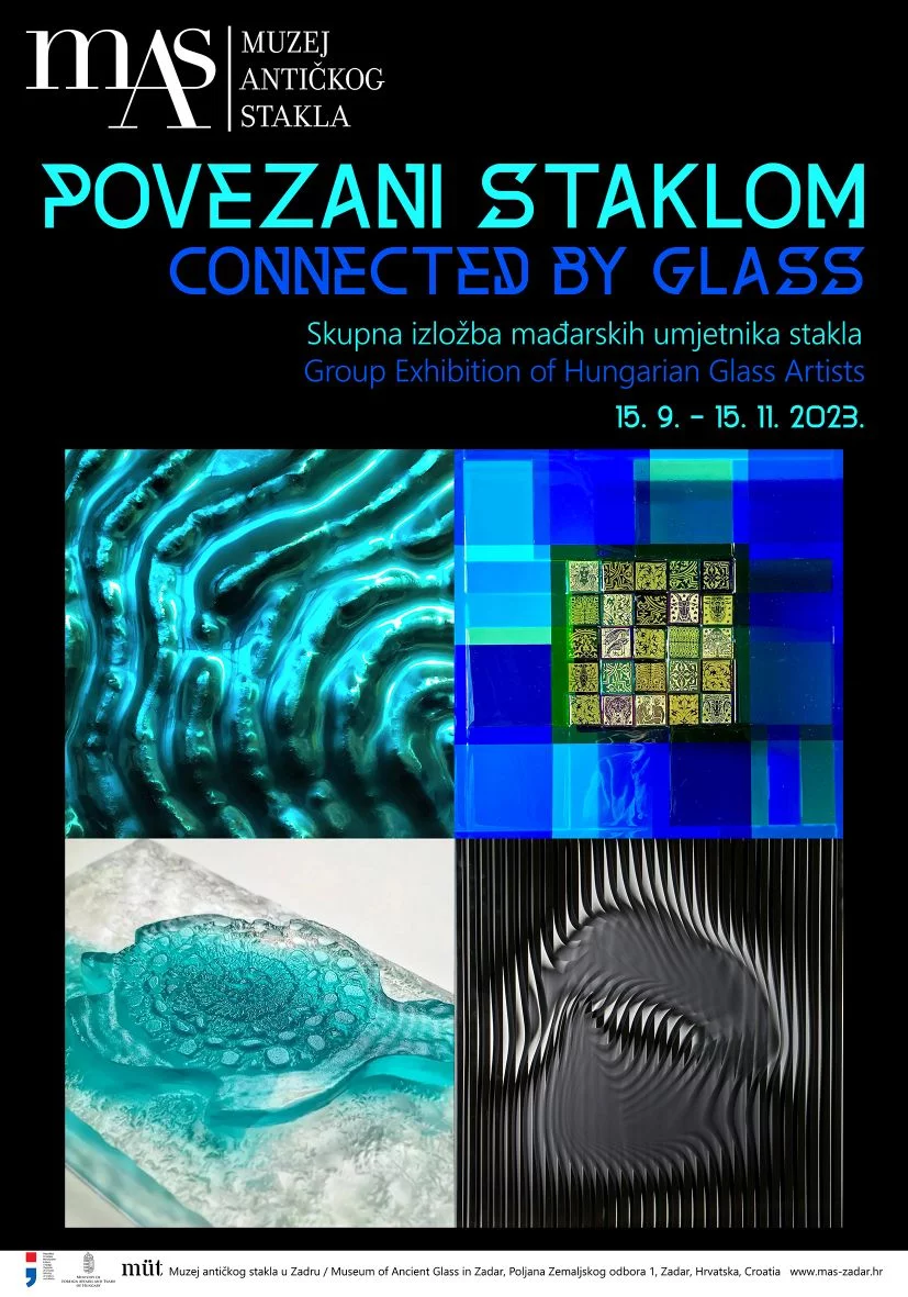 Na izložbi „Povezani staklom“ predstavlja se 48 umjetnika koji prikazuju svu raznolikost rada u staklu kao umjetničkom mediju. Veliko je zadovoljstvo ugostiti toliku količinu različitih radova u staklu, isto toliku količinu umjetničke inspiracije i stilova, ushita kod obrade stakla, eksperimentiranja, inovacije i na kraju povezanosti, povezanosti staklom! Iako je ova izložba većinom izložba članova Društva mađarskih umjetnika stakla, pozvani su za ovu priliku i oni koji nisu službeno članovi. Sve njih veže staklo, svi oni predstavljaju mađarsku suvremenu umjetničku scenu, njezinu raznolikost, uključivost i ponosno ih predstavljamo uz bok produktima antičkih staklara, jer iznad svega vezani smo staklom!