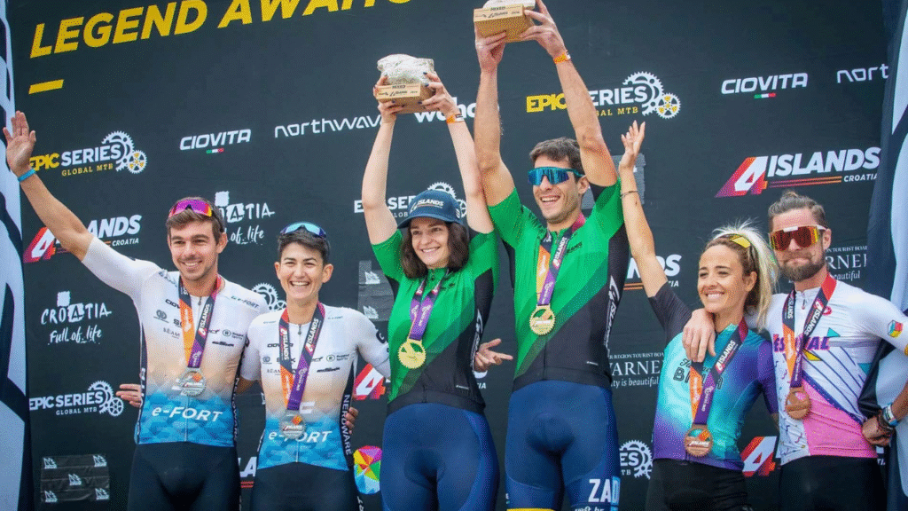 Karmen Škiljić i Tonko Čičin-Šain istaknuti su predstavnici hrvatske MTB scene, čiji su sportski uspjesi zadivili domaću, ali i međunarodnu biciklističku zajednicu. Karmen, kao bivša članica hrvatske MTB reprezentacije, nastupala je na svjetskim utrkama te time postavila visoke standarde za žene u ovom sportu, dok je Tonko godinama dominirao na brojnim domaćim i regionalnim natjecanjima. Njihov zajednički vrhunac bio je trijumf na prestižnoj etapnoj MTB utrci 4 Islands, jednom od najtežih i najatraktivnijih etapnih utrka te vrste u Europi, koja se vozi kroz izazovne terene kvarnerskih otoka i okuplja vrhunske timove iz cijelog svijeta. Osvojiti 4 Islands ne znači samo savladati tehnički zahtjevne staze, već i pokazati iznimnu fizičku spremu, timsku koordinaciju i mentalnu snagu – a upravo su te kvalitete koje krase Tonka i Karmen.