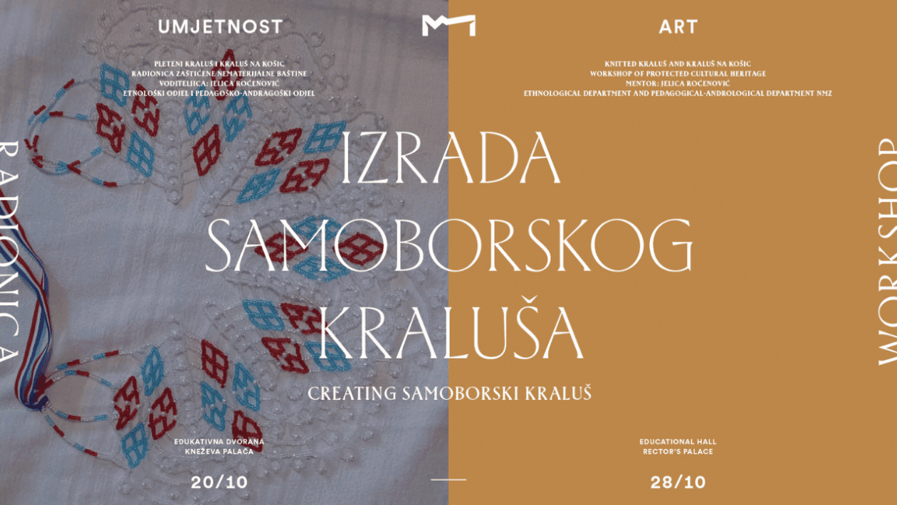 Etnološki odjel Narodnog muzeja Zadar organizira edukativnu radionicu izrade samoborskog kraluša, tradicionalnog nakita samoborskog kraja, od 20. do 28. listopada 2025. godine. Radionica se održava u Edukativnoj dvorani Kneževe palače, a vodi je renomirana etnologinja mr. sc. Jelica Roćenović. Cilj radionice je očuvanje i promocija nematerijalne kulturne baštine kroz praktično učenje tehnike nizanja staklenih perlica.