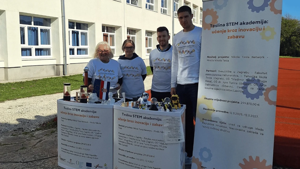 Karlovac, 10. studenoga 2025. – Udruga Nikola Tesla Network – Mreža Nikola Tesla održala je promociju STEM-a u javnom prostoru pod nazivom „Tesla&STEM“ na školskom igralištu Osnovne škole Nikole Tesle u Gračacu! Ovaj Tesla&STEM događaj okupio je mnoge entuzijaste.