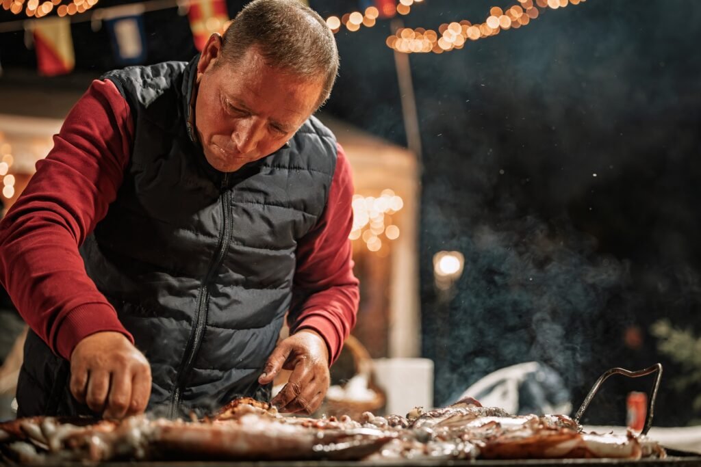 Uz natjecanje u lovu na lignje, posjetitelje je dočekao bogat tradicionalni gastro program. Na jelovniku su se našli pljukanci s plodovima mora, srdele, ali i lignje na žaru, pripremljene upravo od lignji ulovljenih tijekom lignjade. Poseban ugođaj dali su i čučka- fažol, kao i nezaobilazni slatki zalogaji – kroštule i fritule.
