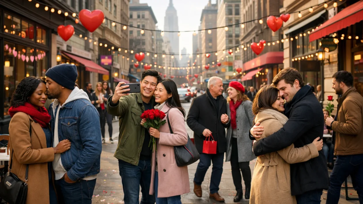 Valentinovo se također odlikuje snažnom medijskom prisutnošću, posebno u tjednima koji mu prethode. Mediji često promoviraju idealizirane oblike romantičnih odnosa, što može utjecati na percepciju stvarnih veza. Primjerice, večere u luksuznim restoranima ili skupi pokloni prikazuju se kao standard. U praksi, mnogi parovi biraju skromnije, personalizirane oblike obilježavanja.